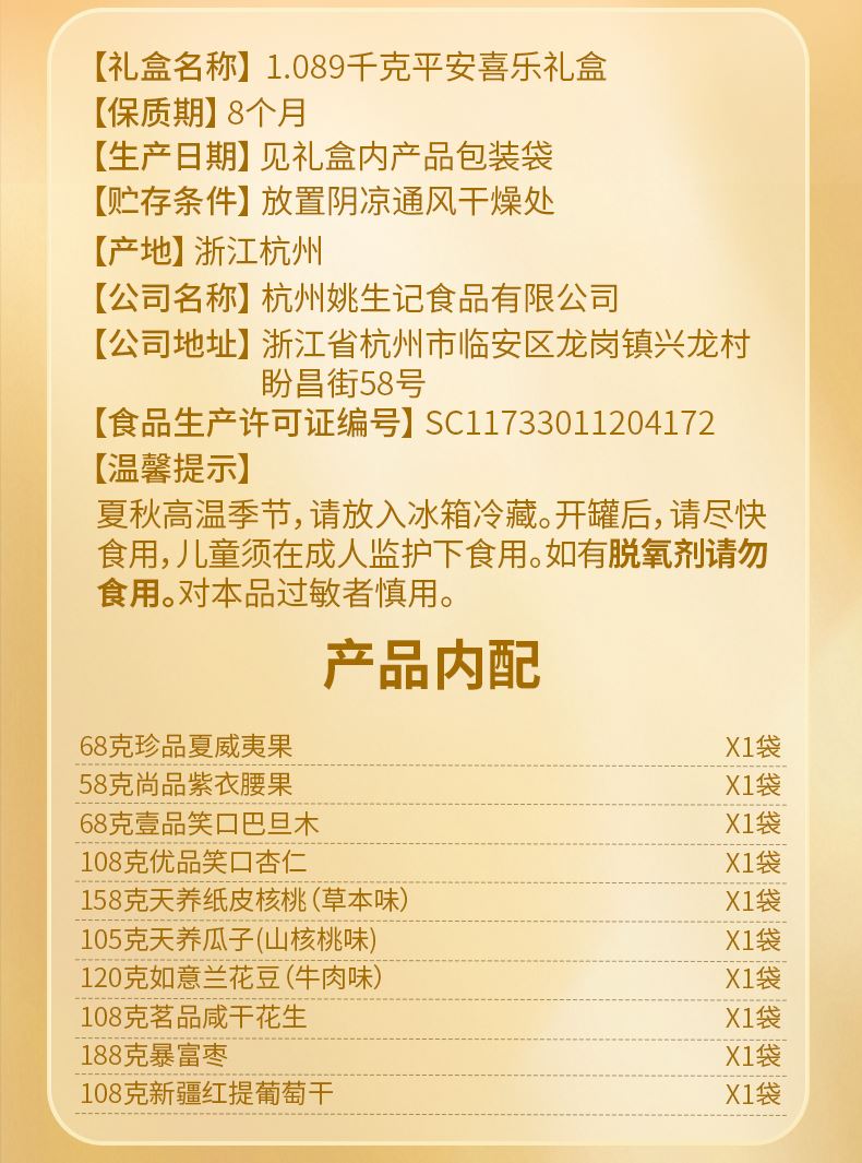 姚生記平安喜樂(lè)堅(jiān)果禮盒A款1.089千克