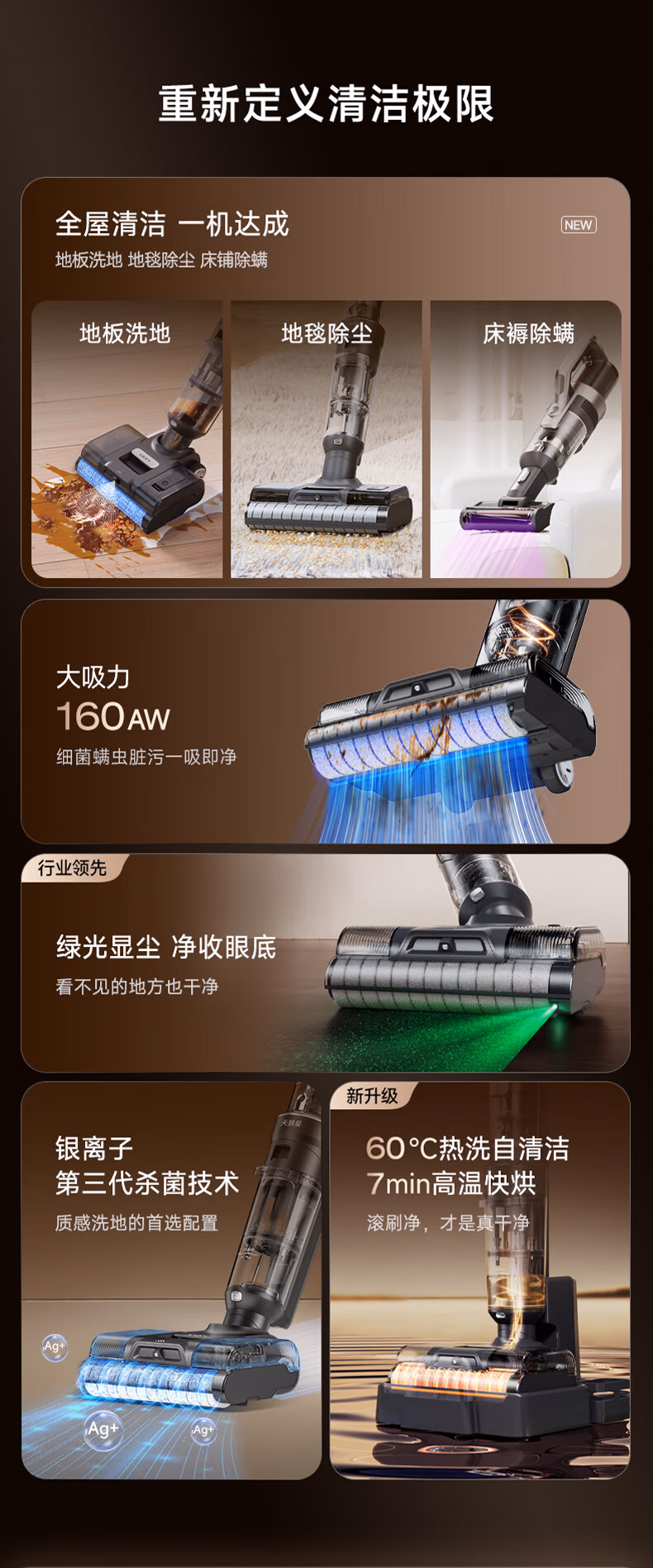 產(chǎn)品凈重:7kg 噪音:78dB 清水箱容量:0.6L 產(chǎn)品尺寸:長265mm;寬155mm;高1140mm 污水箱容量:0.5L 電機(jī)功率:360W 電池規(guī)格:6*4.5Ah 銘牌功率:460W 吸入功率:180AW 家用洗地機(jī),吸拖洗一體 定點(diǎn)噴洗、洗過即干 一鍵自清潔、電池可拆卸 LED電量顯示、換水提醒
