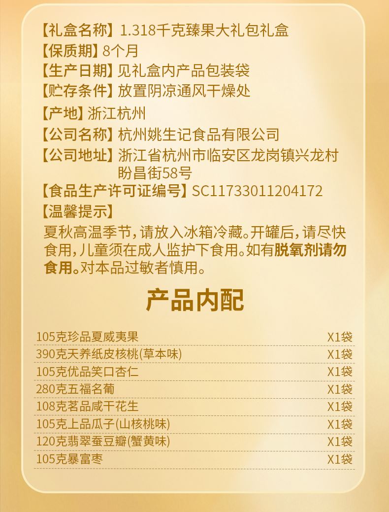 姚生記臻果大禮包堅(jiān)果1.318千克