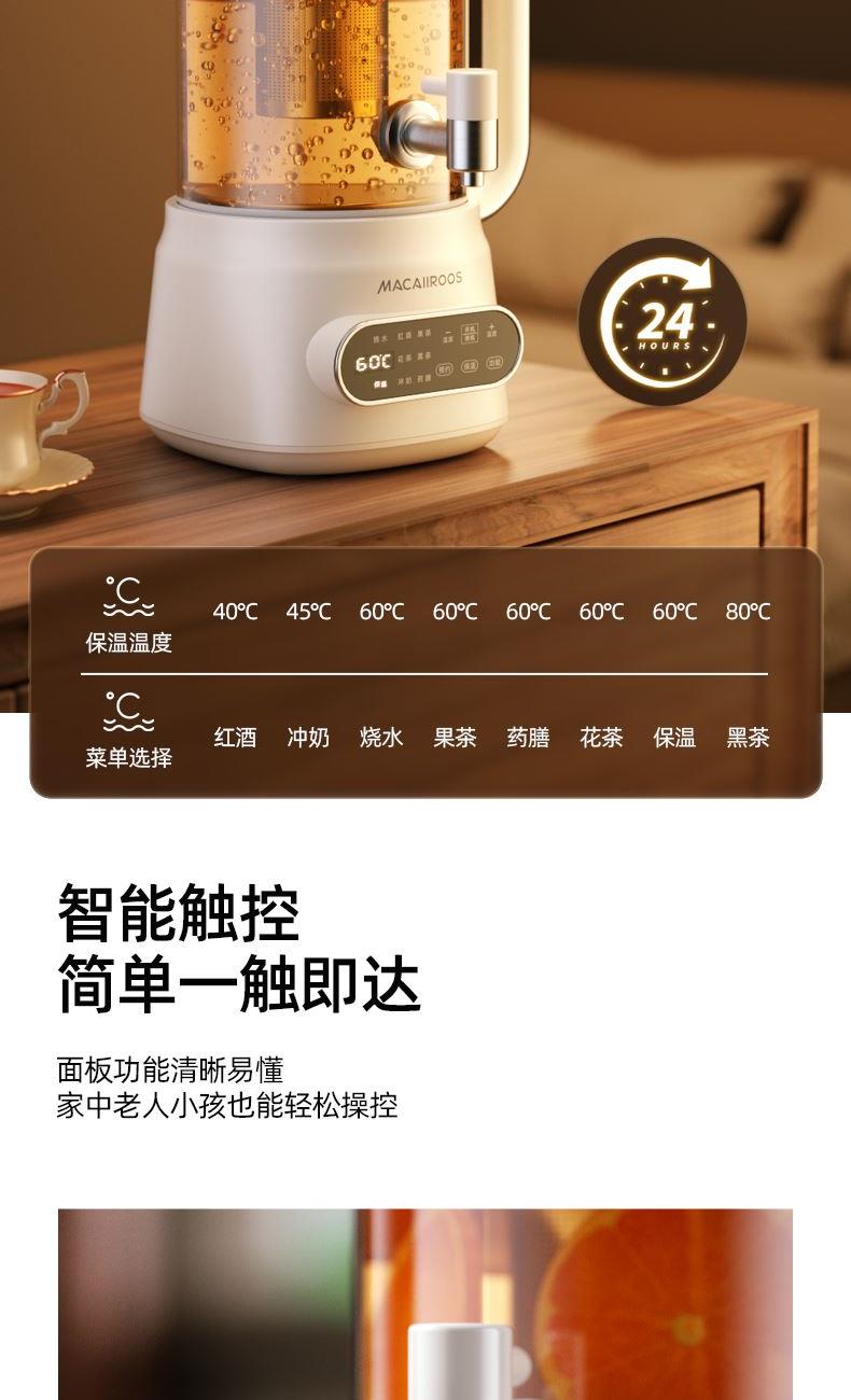 觸控操作8大菜單觸控選擇,24H智能預(yù)約,方便沖奶、烹煮養(yǎng)生花茶;