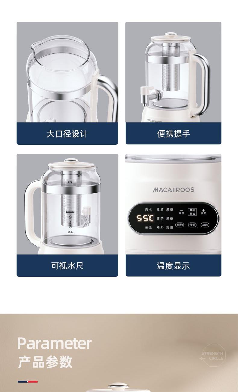 分體式設(shè)計(jì)大容量分體壺身,嵌入式底座連接,方便加水清洗;