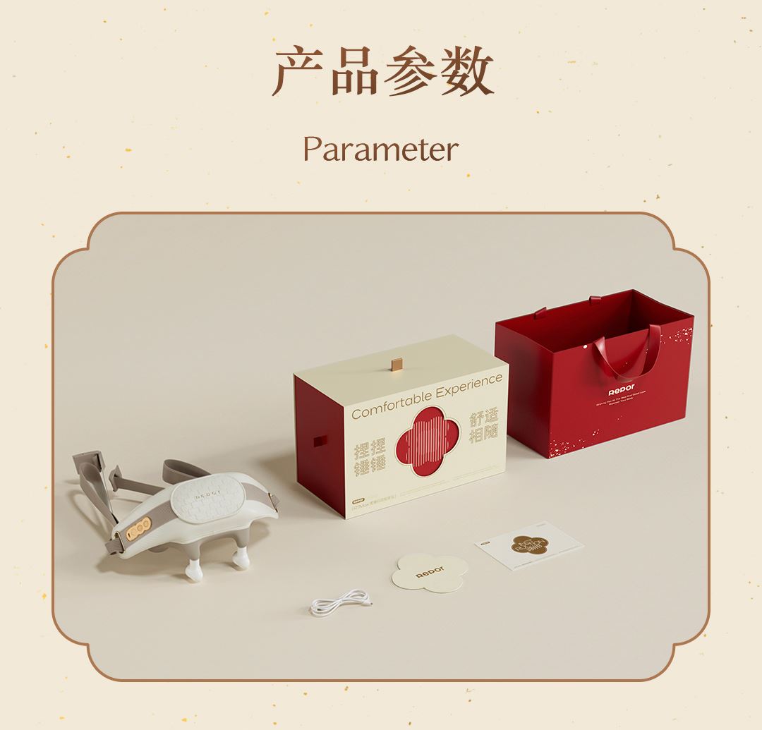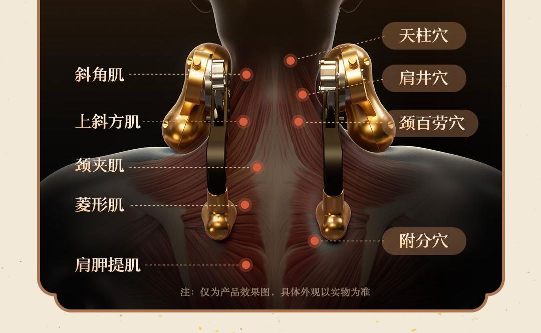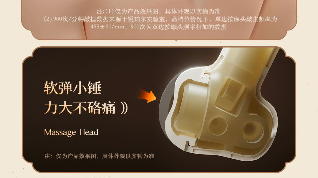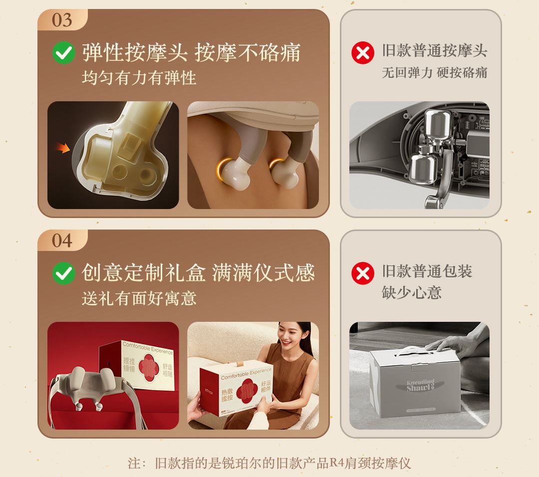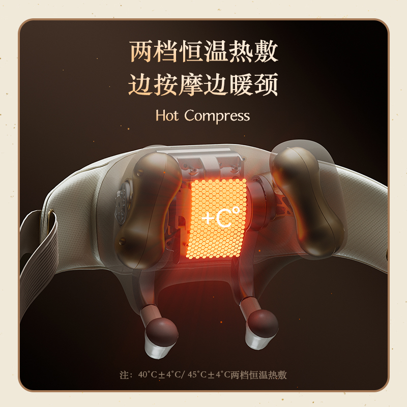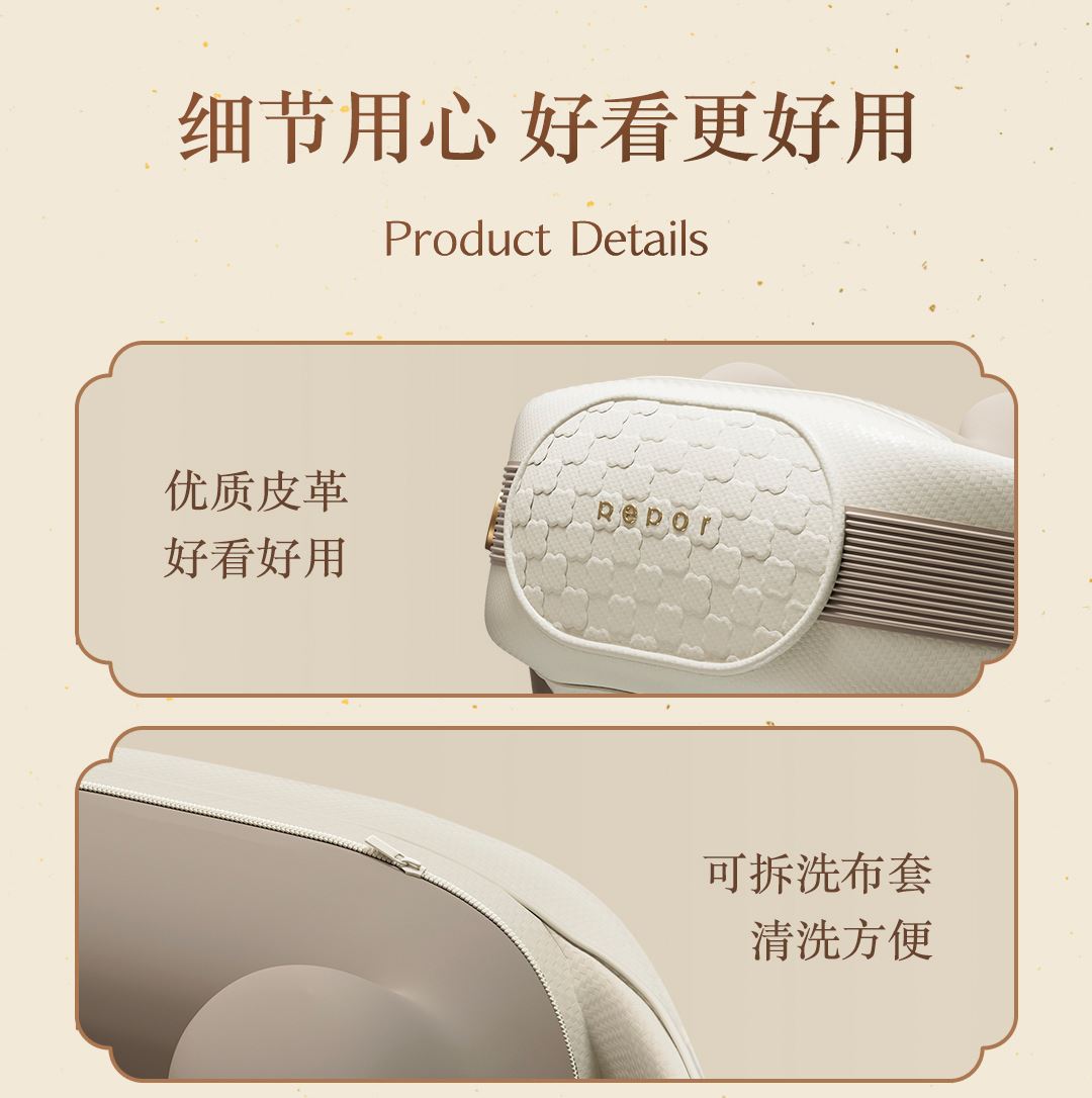 揉捏+捶打 雙手法結(jié)合,按摩面積大 熱敷緩解緊張,力度可調(diào) 搭配可拆洗布套 搭配精致燙金禮盒 送禮更合適