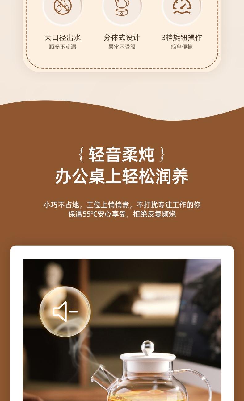 3檔旋鈕選擇長(zhǎng)效保溫,集燒水、花茶、營(yíng)養(yǎng)燉功能于一體