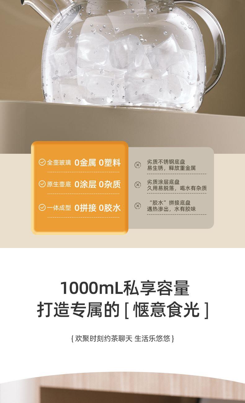 全玻璃壺身0膠水0涂層,高硼硅玻璃冷熱交替不易裂
