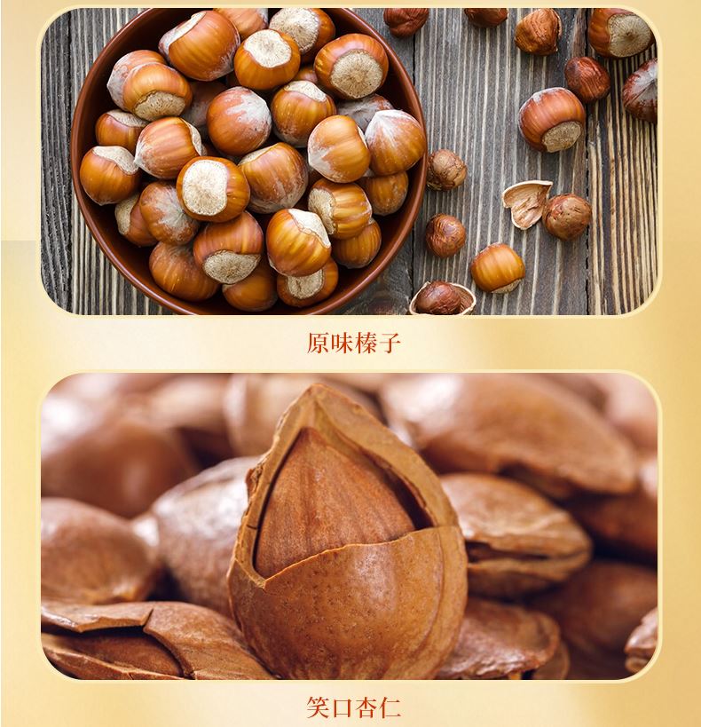 一份謝禮,萬分心意。禮盒以愛馬仕橙為底色,菱格紋、堅(jiān)果與西湖元素,于幾何韻律中交織成畫。盒內(nèi)精選八款人氣堅(jiān)果,將濃情年味與誠摯祝福一并獻(xiàn)上。謹(jǐn)以此心意之禮,感恩歲月,幸甚有你。 禮盒配置: 160克臨安椒鹽味手剝山核桃/方形罐*1 180克越南紫衣腰果/方形罐*1 268克澳洲夏威夷果/方形罐*1 180克河北優(yōu)一笑口杏仁/方形罐*1 138克加州NP笑口巴旦木/方形罐*1 160克俄勒岡州原味榛子/方形罐*1 138克新疆蜂蜜味琥珀核桃仁/方形罐*1 405克新疆五福名葡/方形罐*1