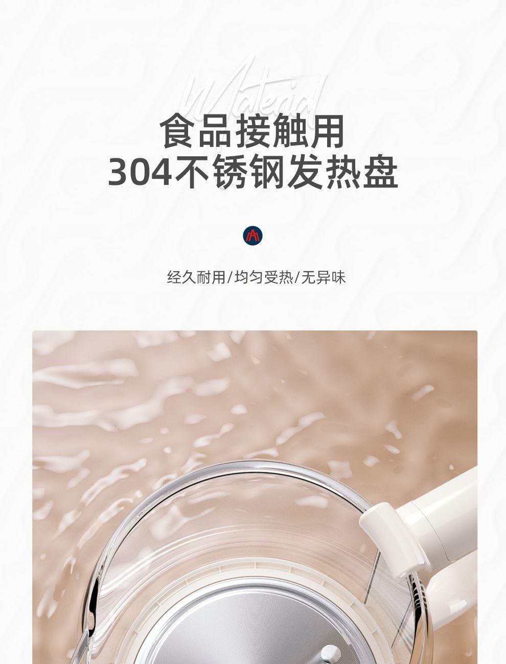 高硼硅玻璃壺身&304不銹鋼發(fā)熱盤(pán)耐驟冷驟熱沖擊,材質(zhì)環(huán)保、無(wú)異味;