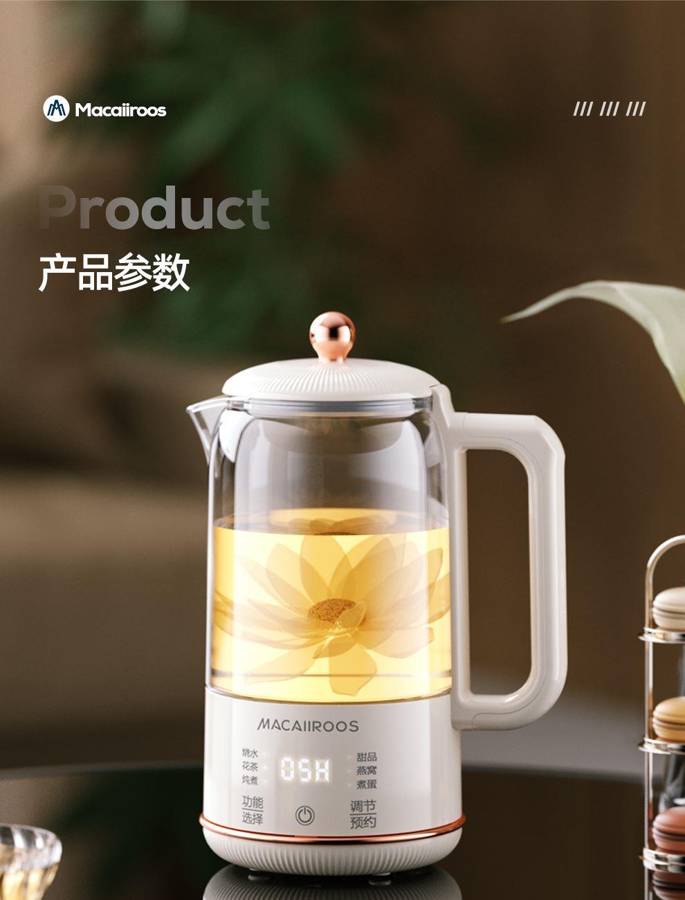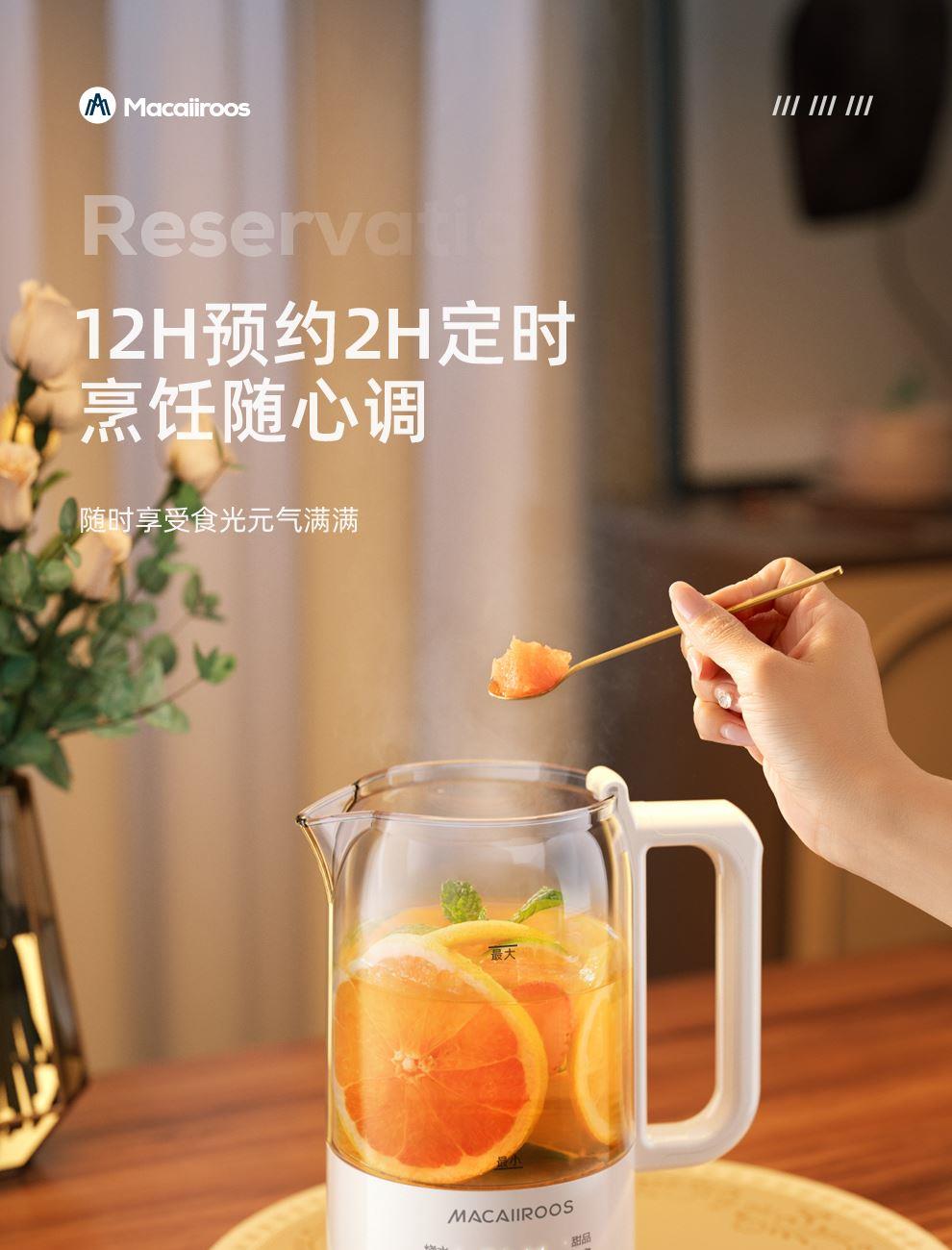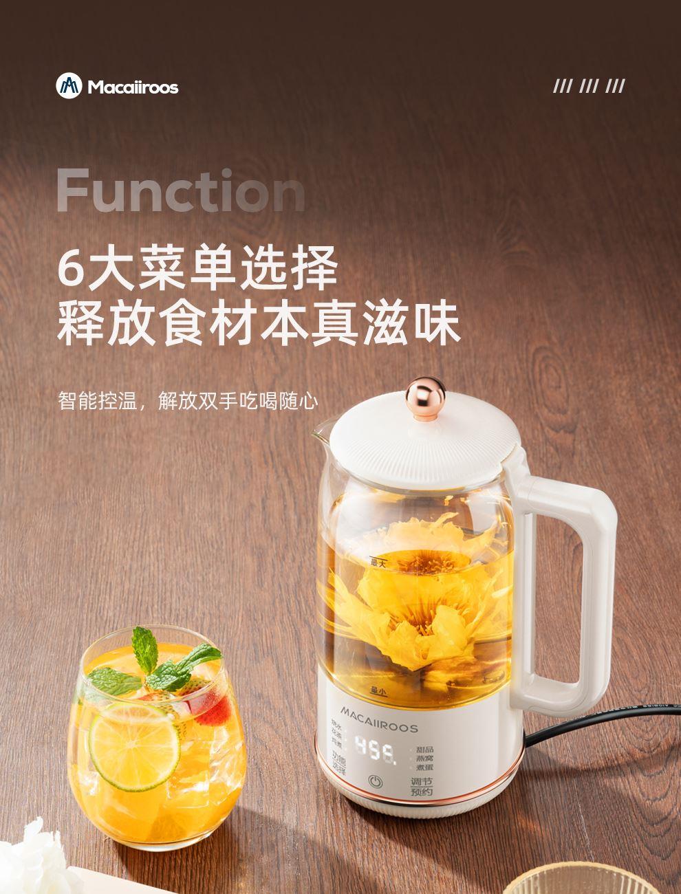 一機(jī)多能6大核心菜單集燒水、花茶、營(yíng)養(yǎng)燉煮等,12h預(yù)約,2h定時(shí);