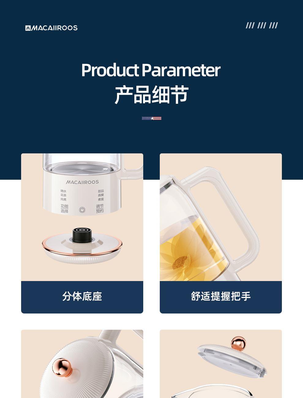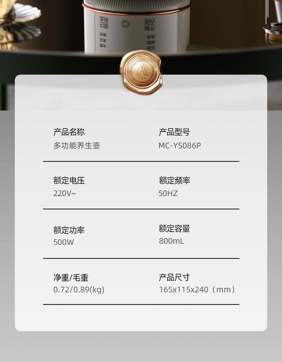 美國(guó)邁卡羅多功能養(yǎng)生壺MC-YS086P