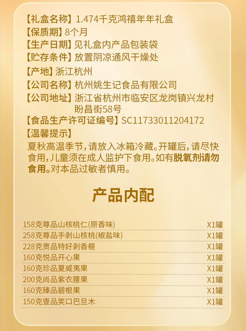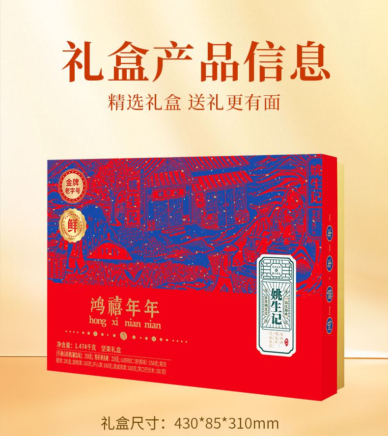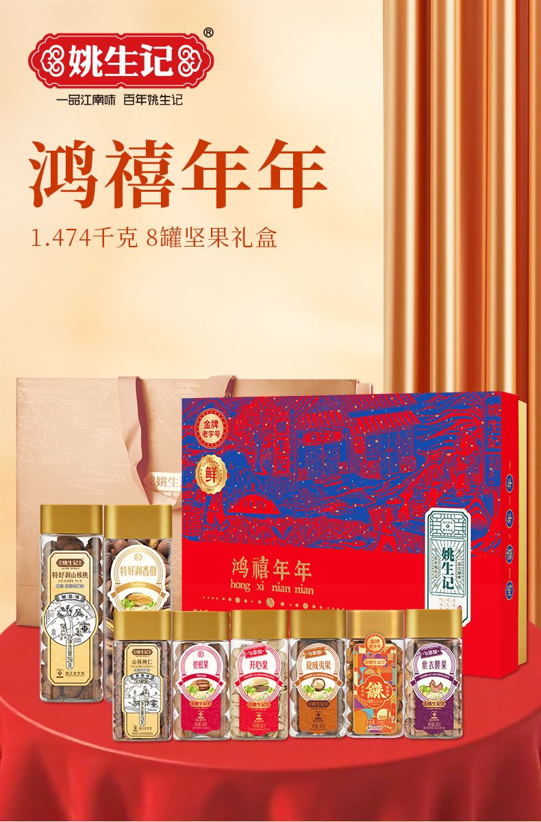 姚生記鴻禧年年堅果禮盒1.474千克 姚生記鴻禧年年堅果禮盒1.474千克