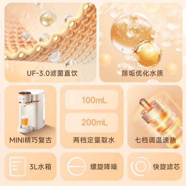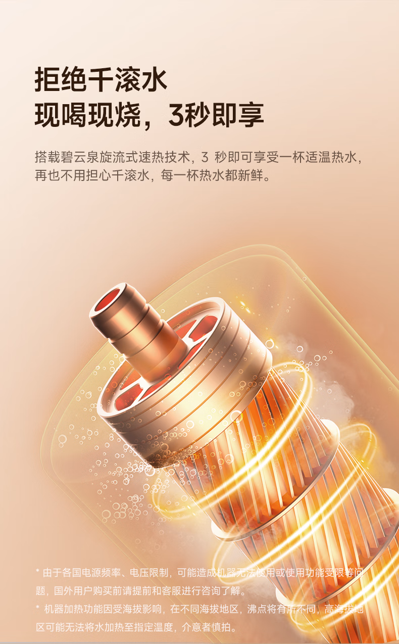 制水流速(常溫):0.9L/分鐘 額定凈水量:1000L 產(chǎn)品尺寸:寬185mm 深328mm 高338mm 濾芯級(jí)數(shù):3級(jí) 過(guò)濾原理:超濾 出水溫度:熱水 水壓范圍(Mpa):0.05-0.1 是否有壓力桶:沒(méi)有壓力桶 用途:生活用水 飲用水 安裝方式:免安裝 額定功率:2200W 產(chǎn)品凈重:3.6kg 旋流速熱、螺旋降噪、快旋濾芯