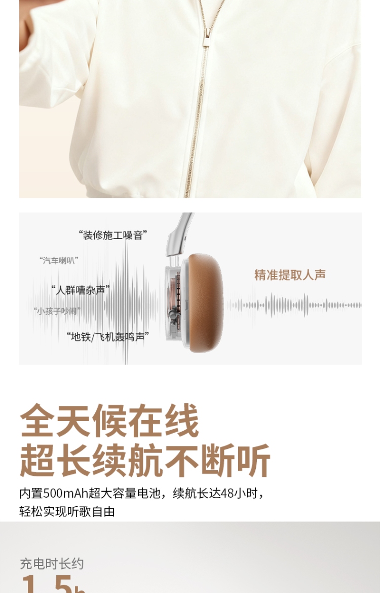 40mm大動(dòng)圈,空間立體聲,高解析,超長(zhǎng)續(xù)航48H