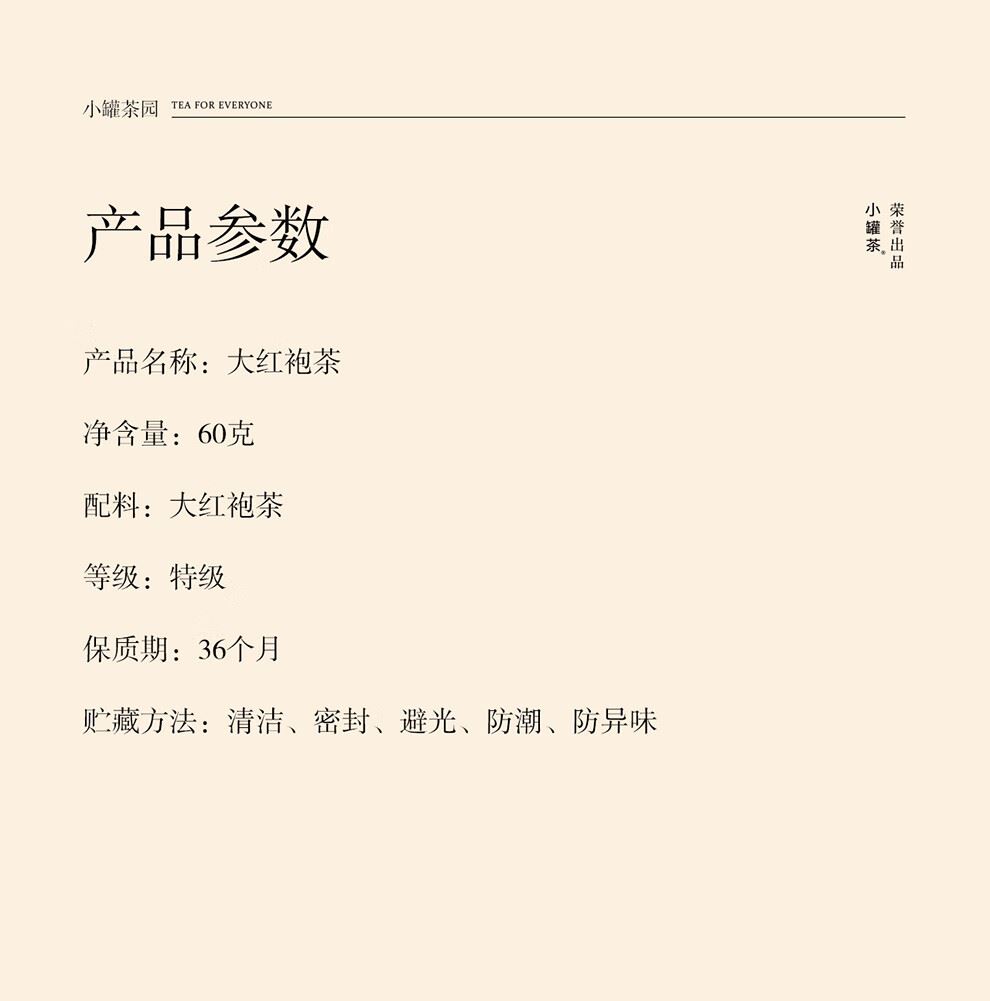 凈含量:60g 配料:大紅袍茶 保質(zhì)期:36個月